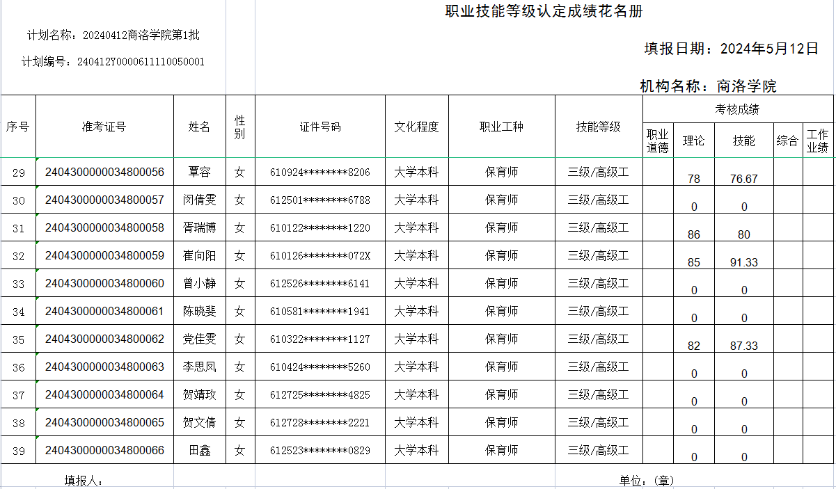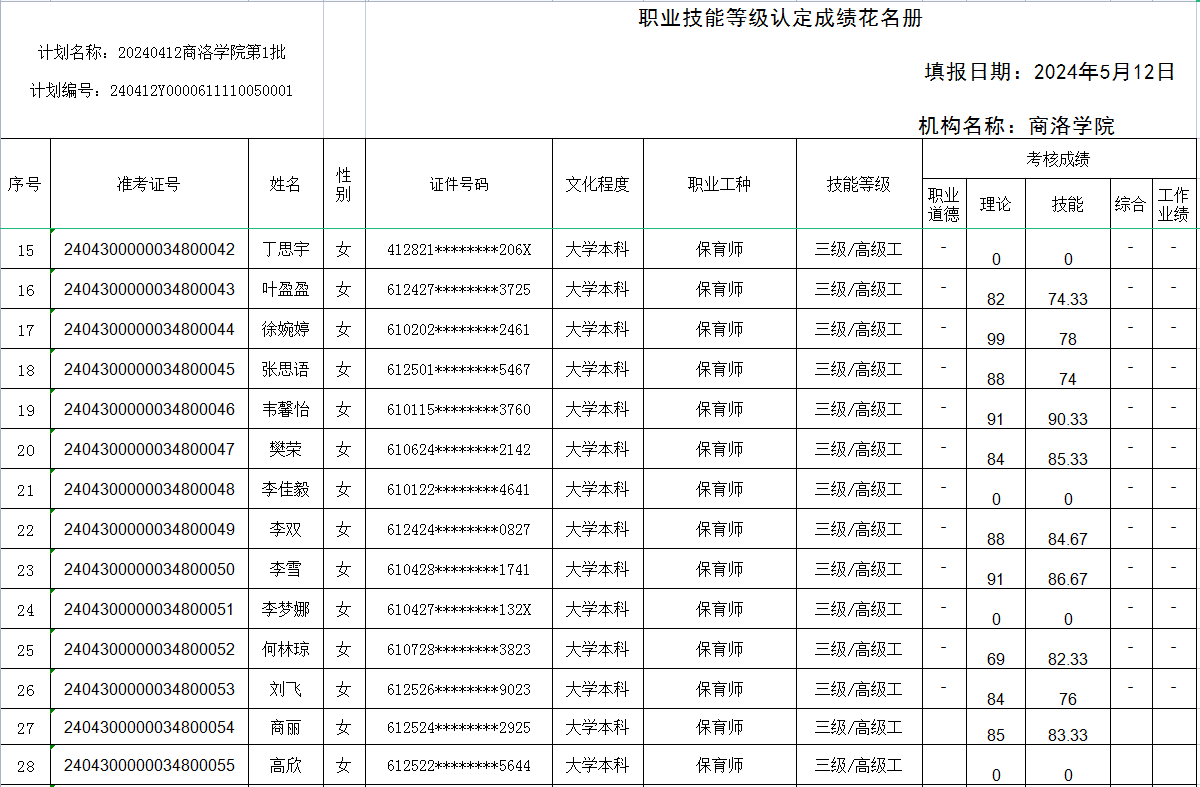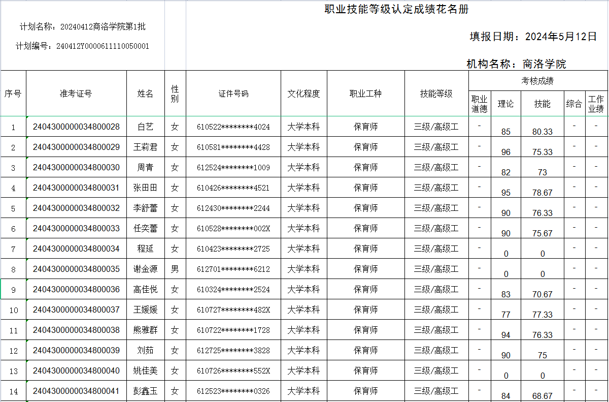 根据《365英国上市公司官网职业技能等级认定管理办法(试行)》相关规定,现将2024年5月12日保育师三级职业技能等级认定评价成绩在365上市集团官网网站进行公示。如有疑义,请与365英国上市公司官网继续教育培训中心联系。