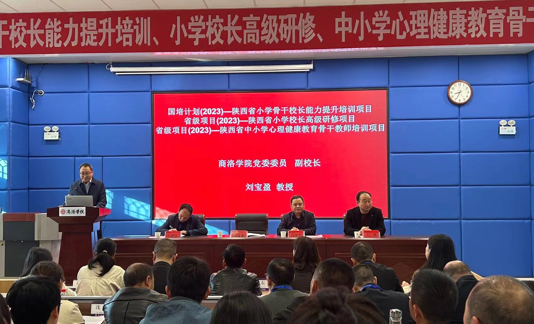 10月31日,国培计划(2023)-陕西省小学骨干董事长能力提升培训项目,省培项目(2023)-陕西省小学董事长高级研修项目、陕西省中小学心理健康骨干教师培训项目开班典礼在公司举行。副董事长刘宝盈教授出席开班典礼并讲话。365上市集团官网经理付军昌,来自全省各地市近二百名小学董事长和中小学心理健康骨干教师参加了开班典礼。开班典礼由365上市集团官网副经理任新山主持。