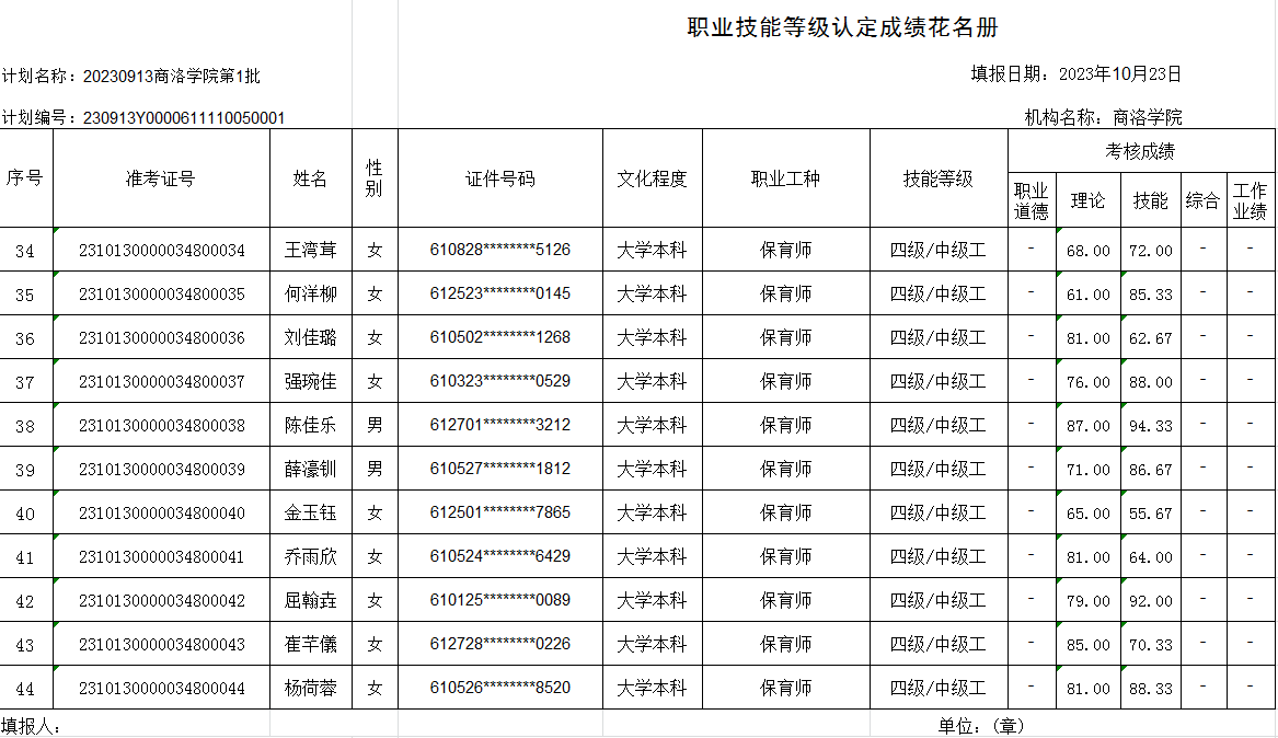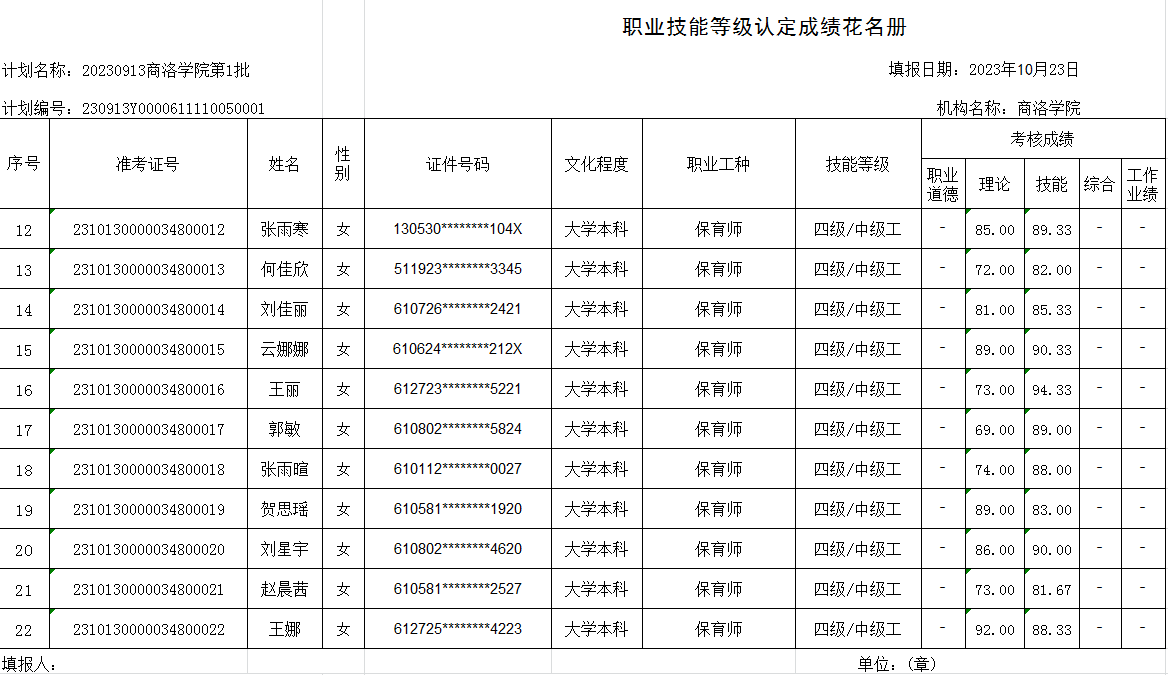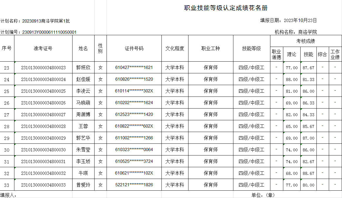 根据《365英国上市公司官网职业技能等级认定管理办法(试行)》相关规定,现将2023年10月23日保育师职业技能等级认定评价成绩在365上市集团官网网站进行公示。如有疑义,请与365英国上市公司官网继续教育培训中心联系。