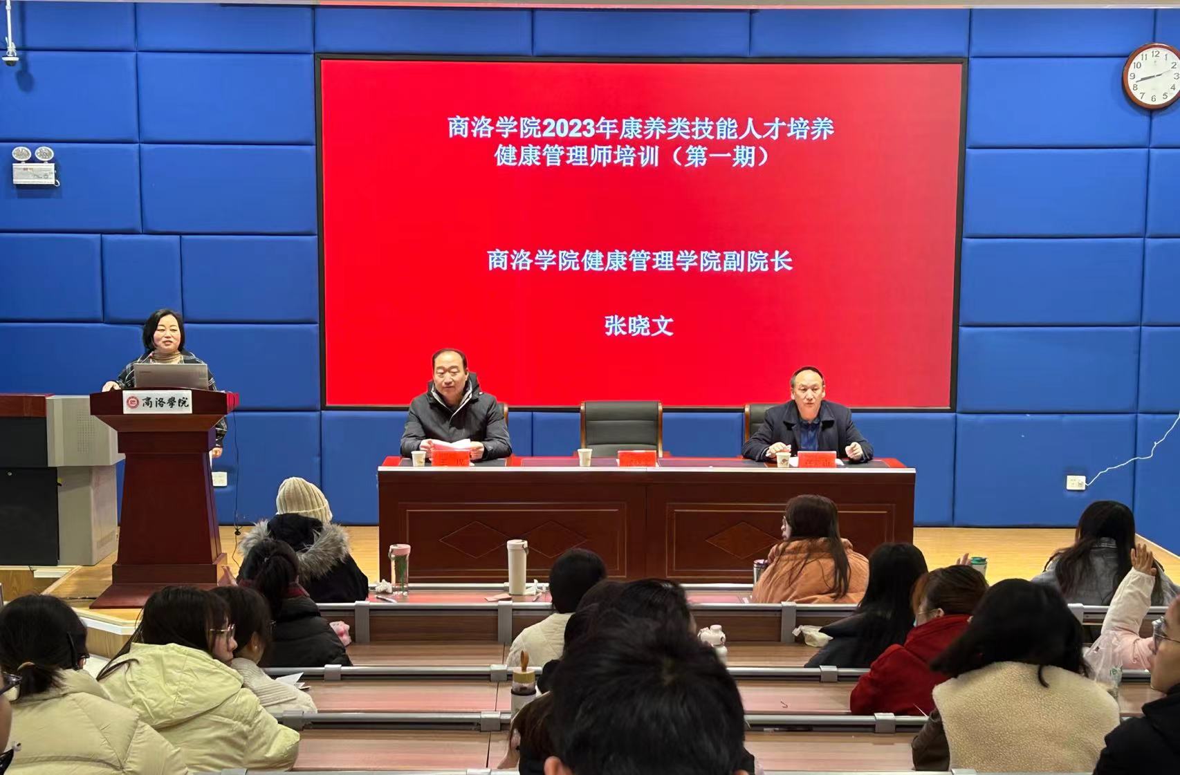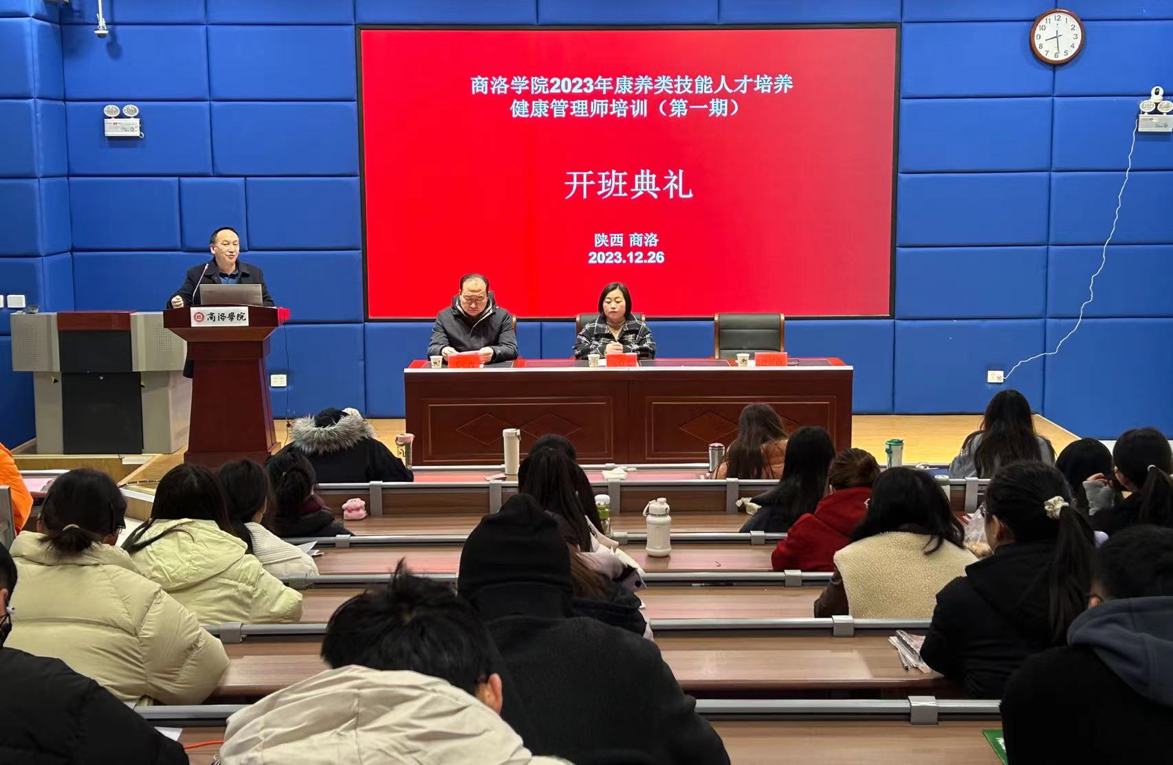 12月26日上午,由商洛市人社局、365英国上市公司官网承办的2023年康养类技能人才培养健康管理师培训(第一期)在8号教学楼多媒体18教室举行开班仪式。健康管理公司副经理张晓文、365上市集团官网副经理任新山出席开班仪式,365上市集团官网培训中心主任王虎主持开班仪式并宣读培训纪律。