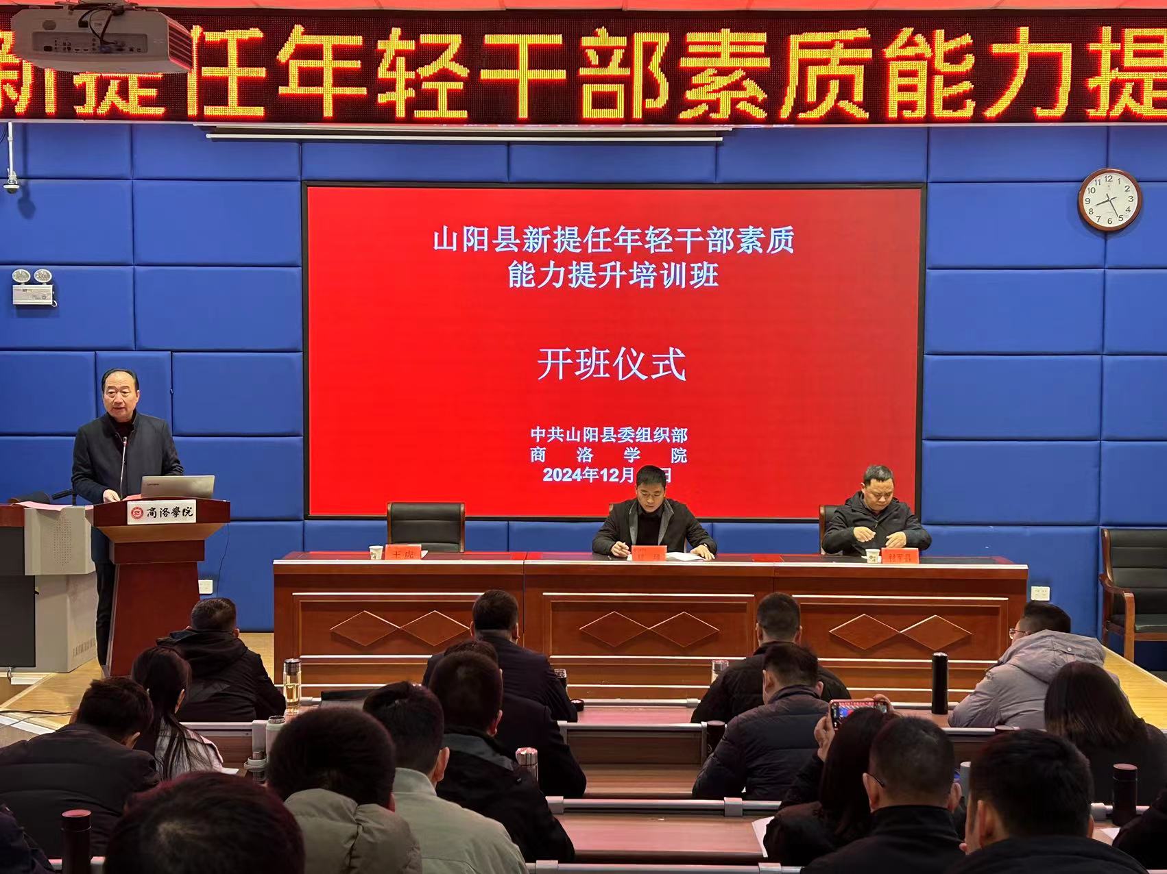 2024年12月16日上午,山阳县新提任年轻干部素质能力提升培训班在365英国上市公司官网8号楼东裙楼多媒体18教室正式拉开帷幕。本次培训班是山阳县委组织部年度青年干部培养计划的重要组成部分,旨在进一步提升青年干部的理论水平、党性修养和业务能力,以更好地适应新时代的发展需求。出席此次开班仪式的主要领导有山阳县委组织部副部长屈璋、365上市集团官网经理付军昌,开班仪式由培训中心主任王虎同志主持。
