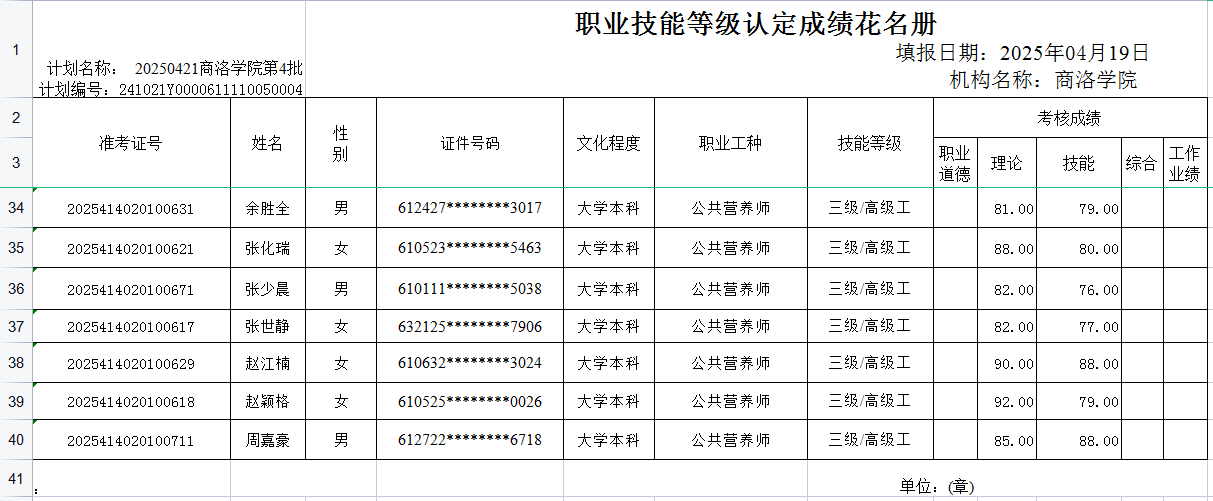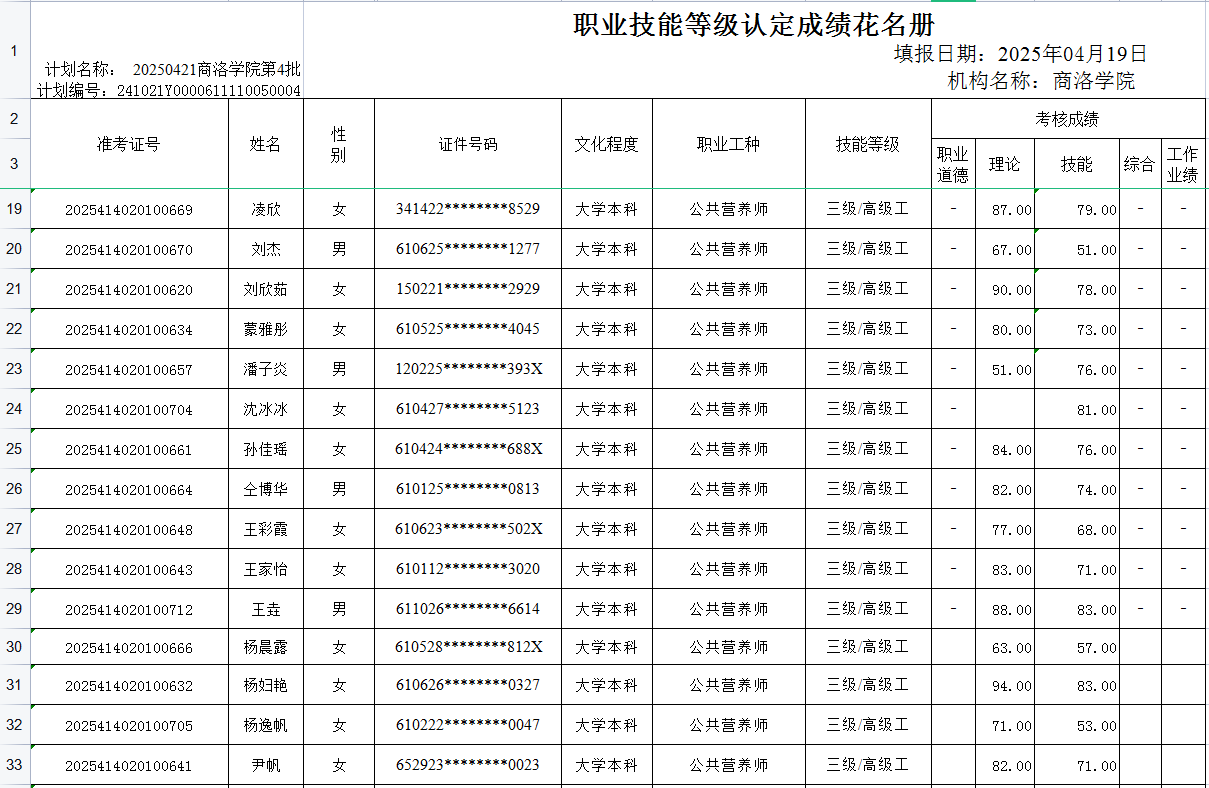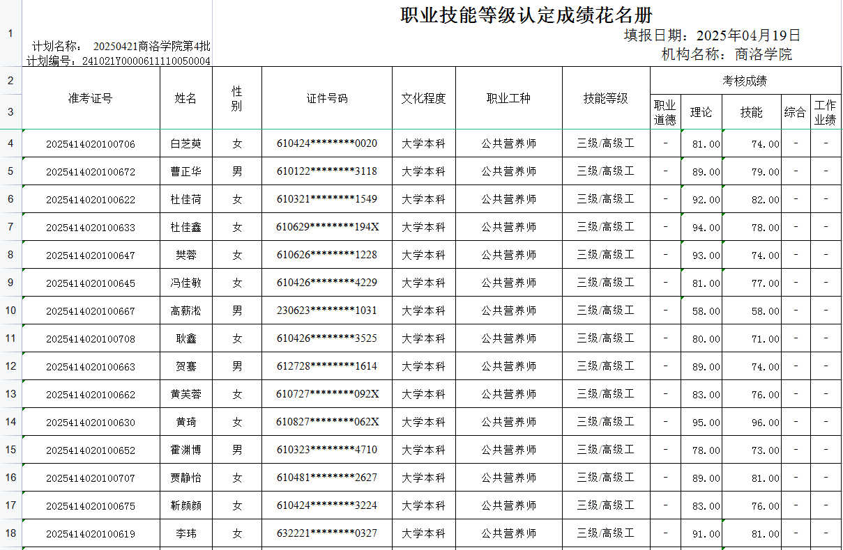 根据《365英国上市公司官网职业技能等级认定管理办法(试行)》相关规定,现将2025年4月19日公共营养师三级职业技能等级认定评价成绩在365上市集团官网网站进行公示。如有疑义,请与365英国上市公司官网继续教育培训中心联系。
