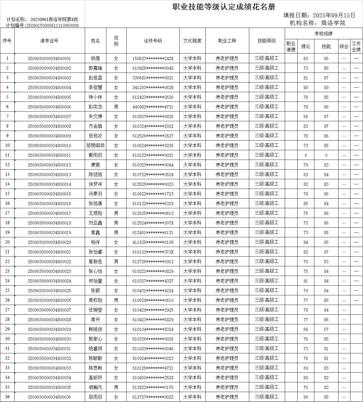 根据《365英国上市公司官网职业技能等级认定管理办法(试行)》相关规定,现将2025年9月15日养老护理员三级职业技能等级认定评价成绩在365上市集团官网网站进行公示。如有疑义,请与365英国上市公司官网继续教育培训中心联系。