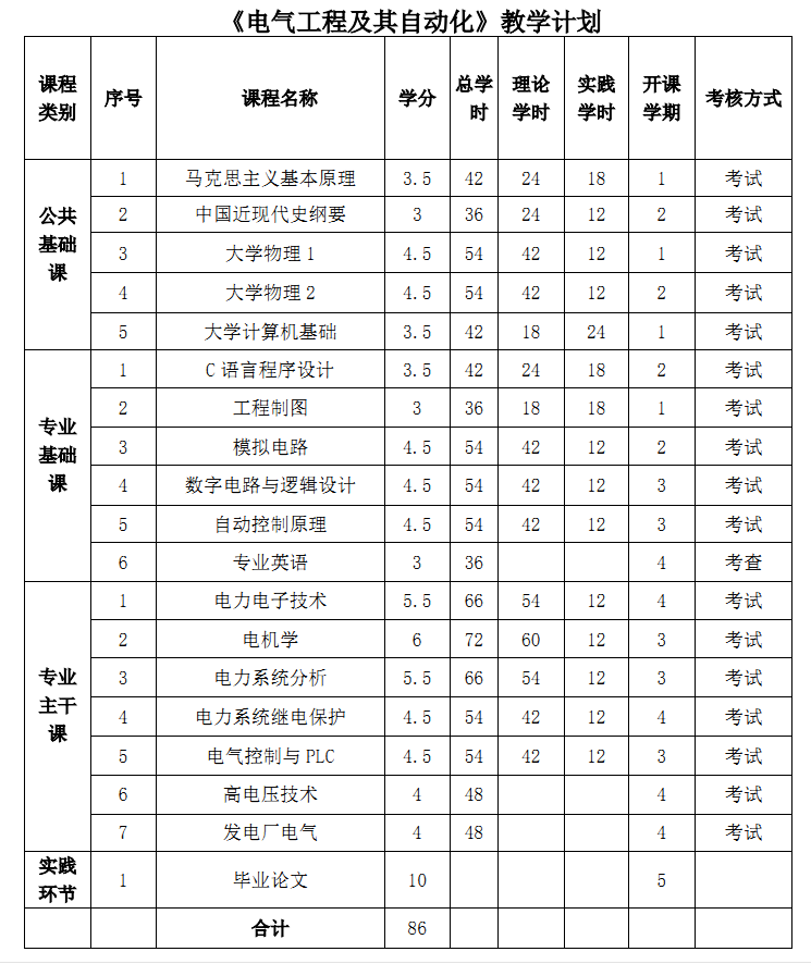 《电气工程及其自动化》教学计划