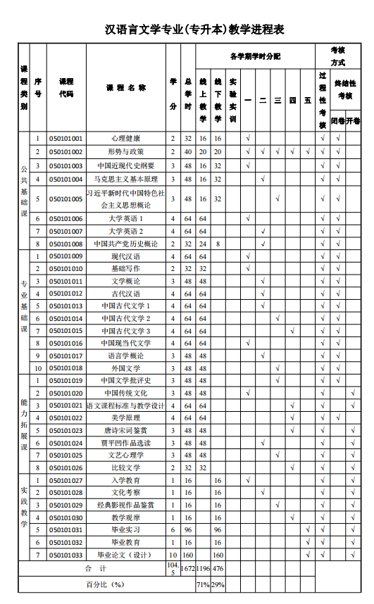 2026级《汉语言文学》-教学计划