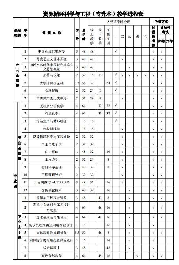 2026级《资源循环科学与工程》-教学计划